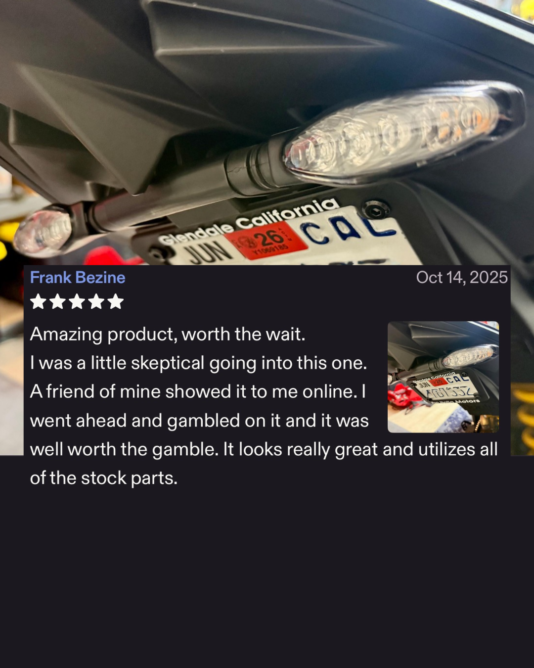 2026 RSV4 Tail Tidy Fender Eliminator and Tuono V4 Tail Tidy Fender Eliminator. All one peace. Easy plug and play. Stock signal/brake lights and tag light bolt right on. Uses all O.E.M. hardware. All wires are hidden. Very clean install. Made from a ultra strong, sturdy, and semiflexible custom inhouse blend of photopolymer resin. Dealer pricing available on larger orders at a heavy discount. Please reach out with any questions to 3DFlowForge@gmail.com Thank you.